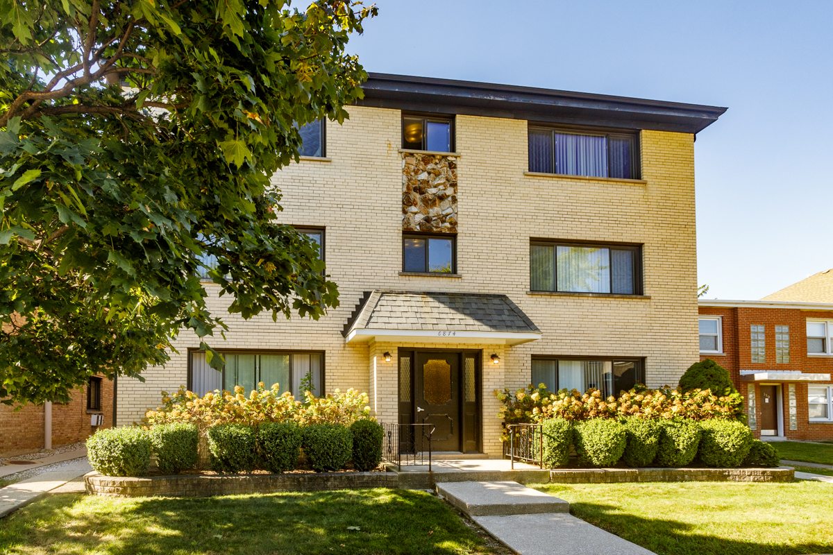 The building at 6874 NW. Highway features hardwood floors, stainless and granite finishes, along with an amenity package that includes heat, water and gas.